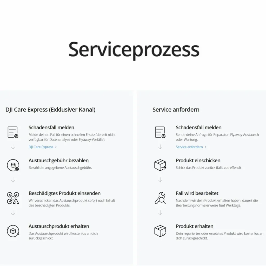Die neue Express-Option gibt dir die Möglichkeit, den Prozess zur Schadenseinschätzung komplett zu überspringen. Dadurch schickt dir ein DJI Service-Center sofort nach Erhalt der beschädigten Drohne ein Ersatzgerät zu.