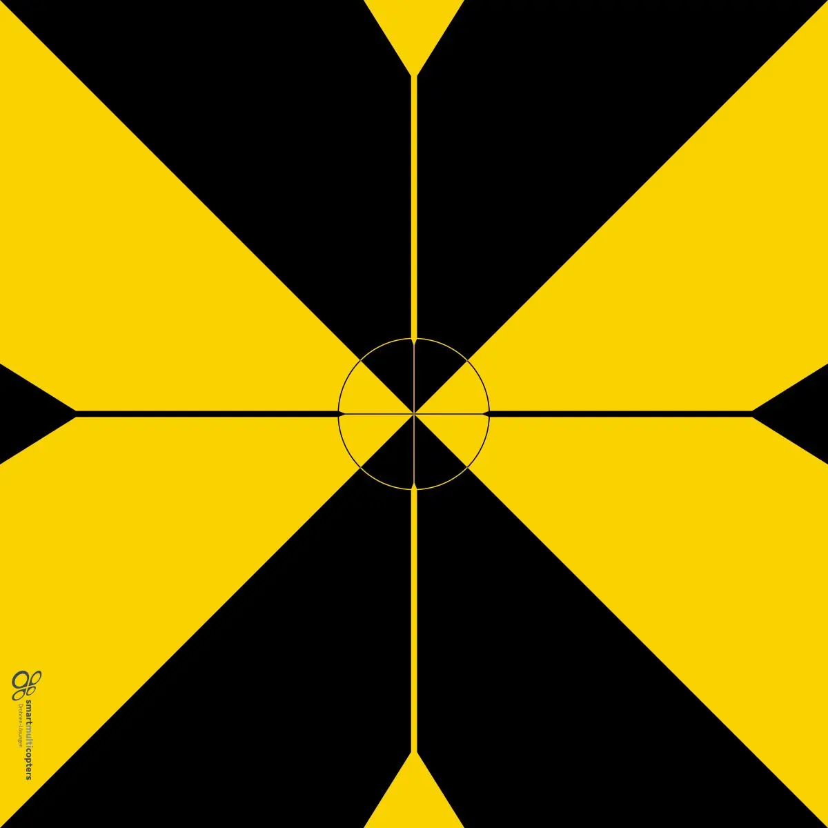 Unsere präzisen 400 x 400mm Luftbildplatten mit hervorragender Sichtbarkeit aus großer Entfernung, um eingemessene Referenzpunkte schnell aus der Luft zu identifizieren.
